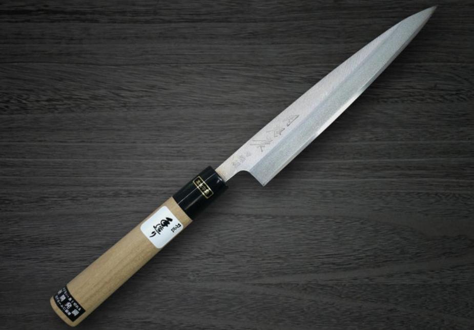 日本の刃物界で名高い正本は、江戸時代後期にまで遡る歴史を持つ、日本で最も尊敬され、影響力のある刃物メーカーの一つです。特に寿司包丁と刺身包丁で知られています。正本の炭素鋼製刃物はプロの間で高い評価を得ており、伝統的な日本の魚切り包丁の最高峰と称されることも少なくありません。