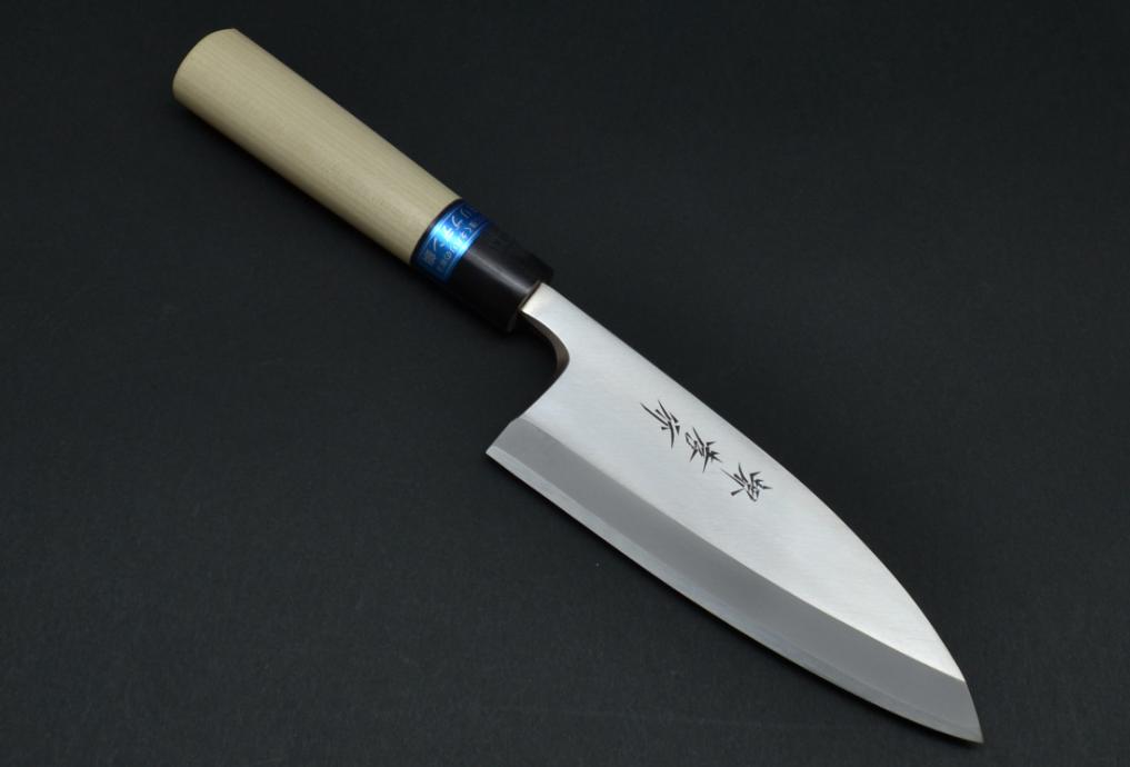 その他の一般的なタイプとしては、 ナキリ (まっすぐな刃の野菜切り包丁)、 ささいな (小型の万能ナイフ)、 柳葉 (長い刺身スライサー)、そして その デバ (魚用の厚手の片刃ナイフ)